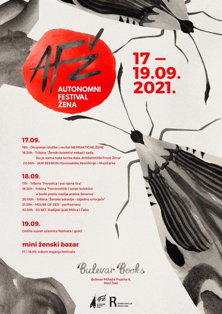 Autonomni Festival Žena – AFŽ nastavlja svoje aktivističke dijaloge i u 2021., a ove godine pod sloganom „Ima nas“. Dvednevni festival biće održan u novosadskoj knjižari Bulevar Books, u petak i subotu, 17. i 18. septembra.