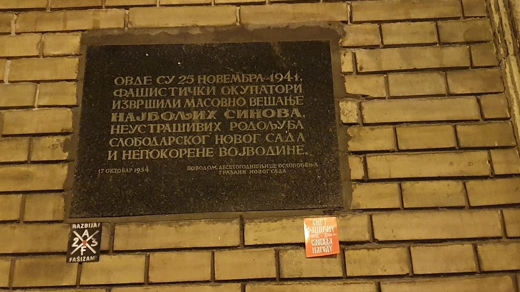 „Mi pamtimo! Odali smo počast žrtvama tako što smo tablu sredili, skinuli sa nje slojeve prljavštine i zaborava. Čista, kao što je antifašistička borba čista, sa table se danas u Futoškoj ulici jasno vidi poruka: ‘Ovde su 25. novembra 1941. fašistički okupatori izvršili masovno vešanje najboljih sinova, neustrašivih rodoljuba slobodarskog Novog Sada i nepokorene Vojvodine’, saopšteno je iz AF 23. oktobar.