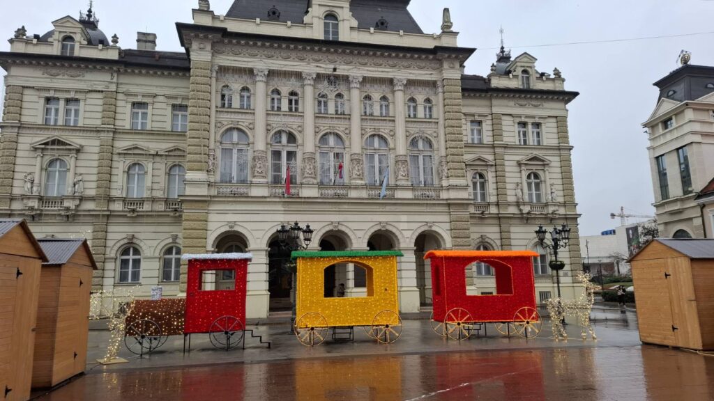 Ipak, voz je stigao u centar ispred Gradske kuće. Zapravo, vozić za decu ukrašen lampicama, kao dekorativan momenat u „Novosadskom zimzolendu“, koji treba da bude centar ovogodišnjih prazničnih okupljanja.