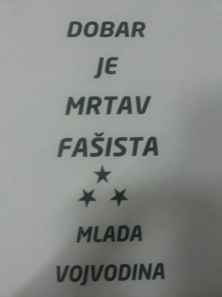 Organizacija Mlada Vojvodina danas se ponovo oglasila plakatima na kojima piše “Dobar je mrtav fašista”.