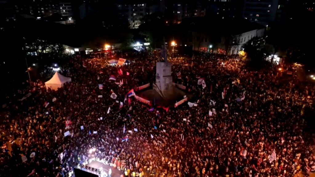 Na studentskom protestu „Pumpaj, pumpaj, Ibar vodo“, sinoć između 19 i 20 časova na Trgu ratnika u Kraljevu bilo je okupljeno oko 15.000 ljudi, što je srazmerno broju stanovnika kao 330.000 u Beogradu, saopštio je Arhiv javnih skupova.