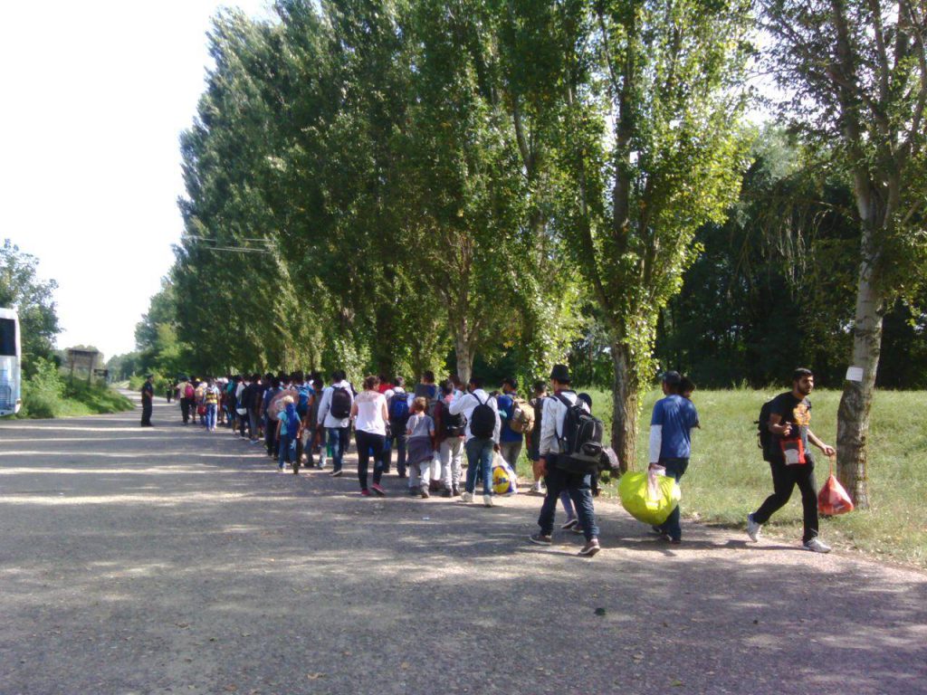 Izbeglice dovoze autobusi iz Kanjiže, mahom subotičkih registarskih tablica i ostavljaju ih kod Velike čarde u vikend naselju Baračka, odakle ljudi peške prelaze oko kilometar puta do mosta prema Hrvatskoj.