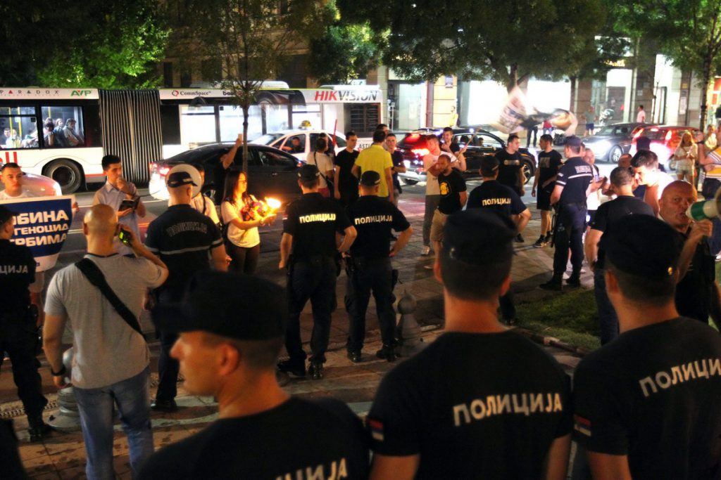 Uz veliko policijsko obezbeđenje, učesnici skupa su nosili transparent „Nikada nećemo zaboraviti genocid u Srebrenici“ i table sa brojem 8.372 kako bi ukazali na broj žrtava tog zločina.
