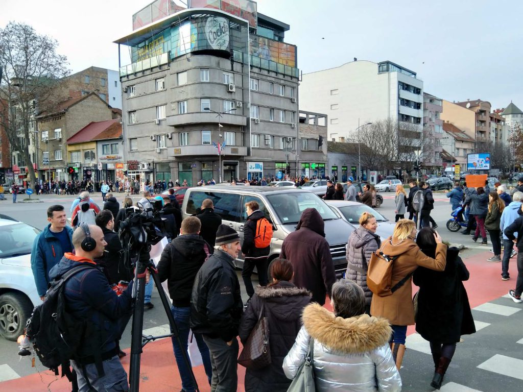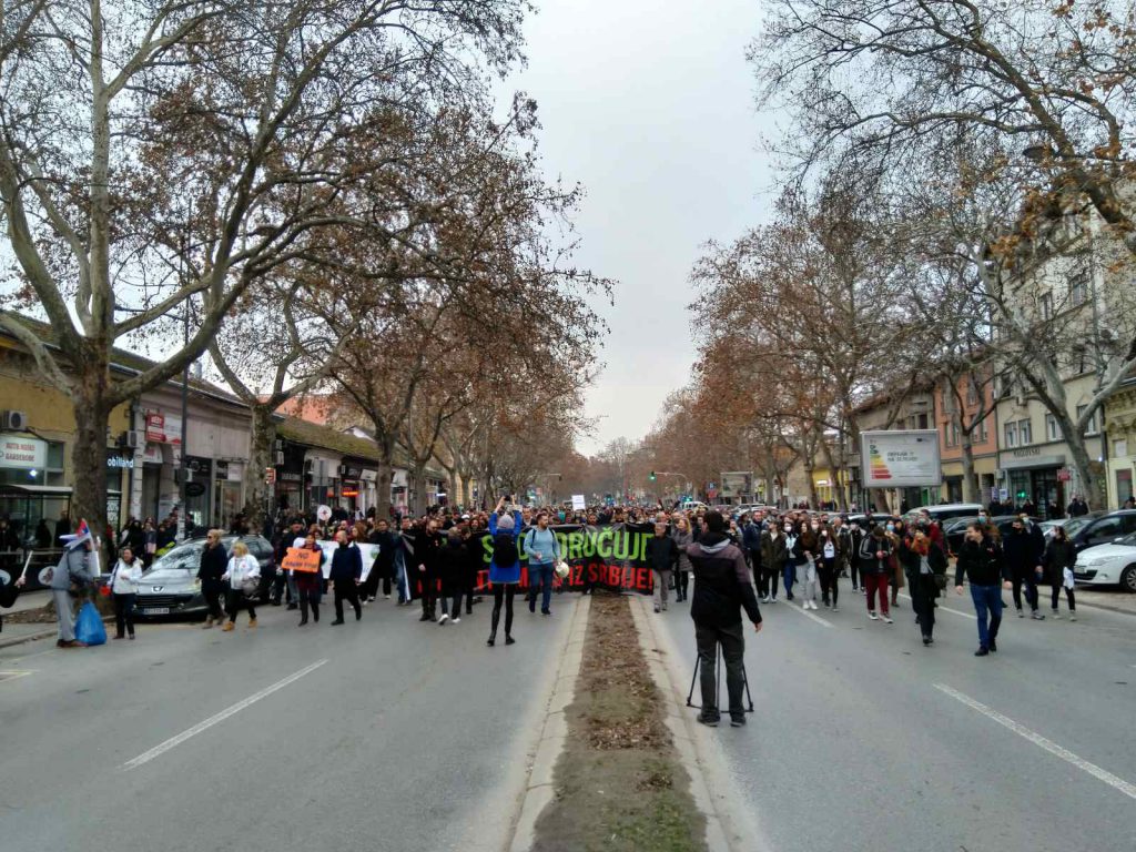 Nakon jednočasovne blokade demonstranti su od Futoške pijace krenili u protestnu šetnju blokirajući celu Jevrejsku ulicu.