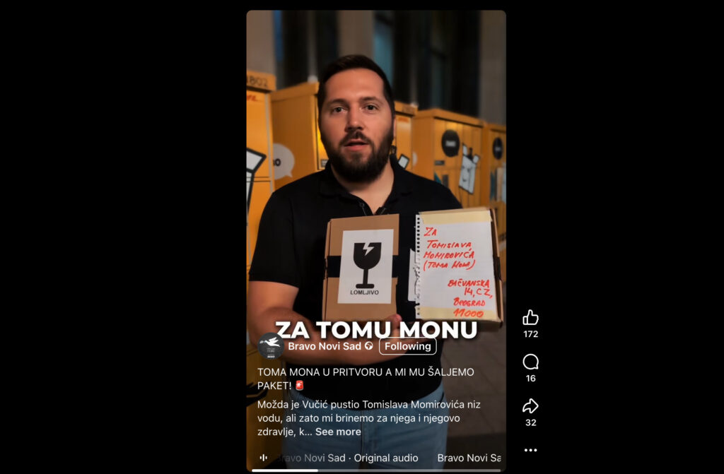 Bravo poslao paket Tomi Moni u pritvor – jaja, parizer, sapun i Vučićeva knjiga