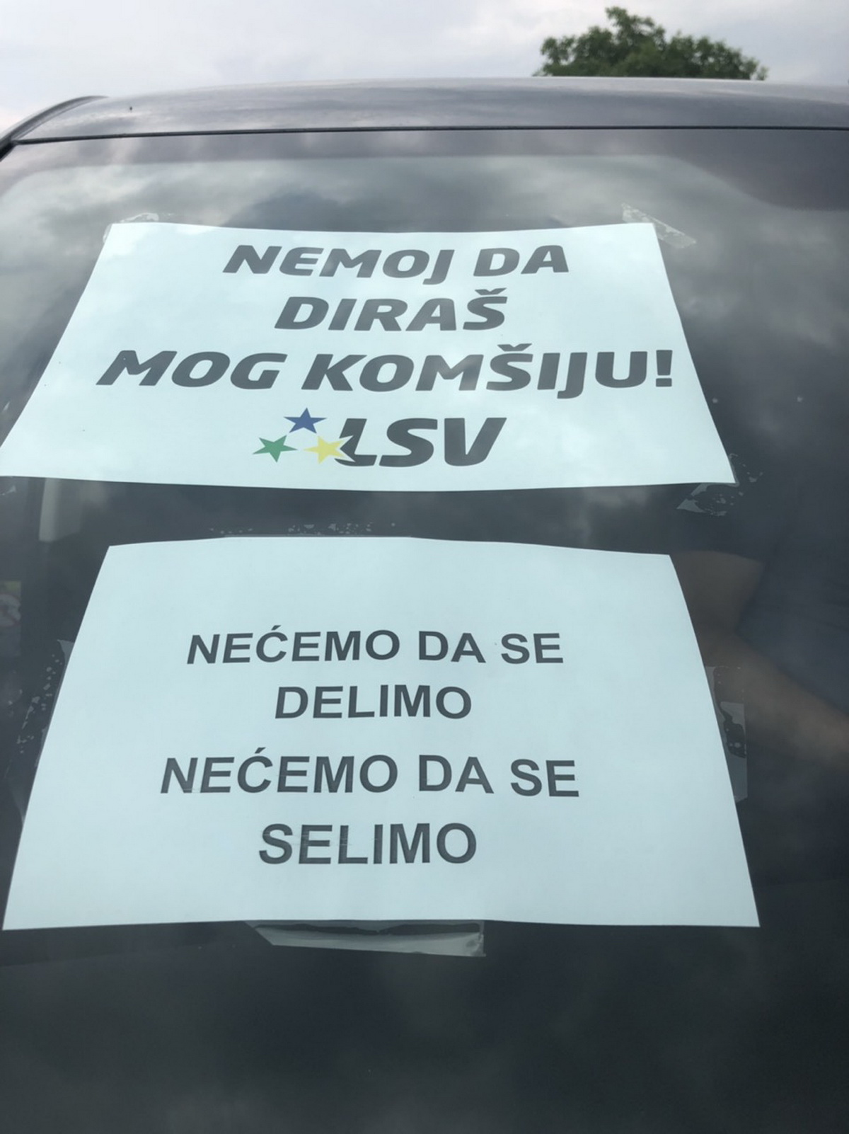 Čanak je objasnio da su predstavnici LSV krenuli ka Hrtkovcima jer „pripadnici zločinačke organizacije SRS i osuđeni ratni zločinac Vojislav Šešelj ne odustaju od namere da se vrate na mesto zločina od pre 26 godina“, te poručio da je današnji događaj veliko upozorenje državi.