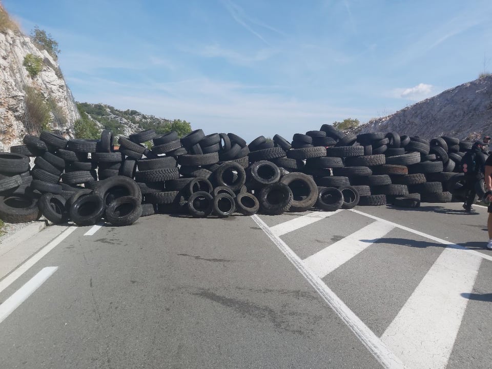 Na kilometar od ulaska u Cetinje (iz pravca Podgorice) protivnici ustoličenja postavili su barikade, uglavnom od automobilskih guma.