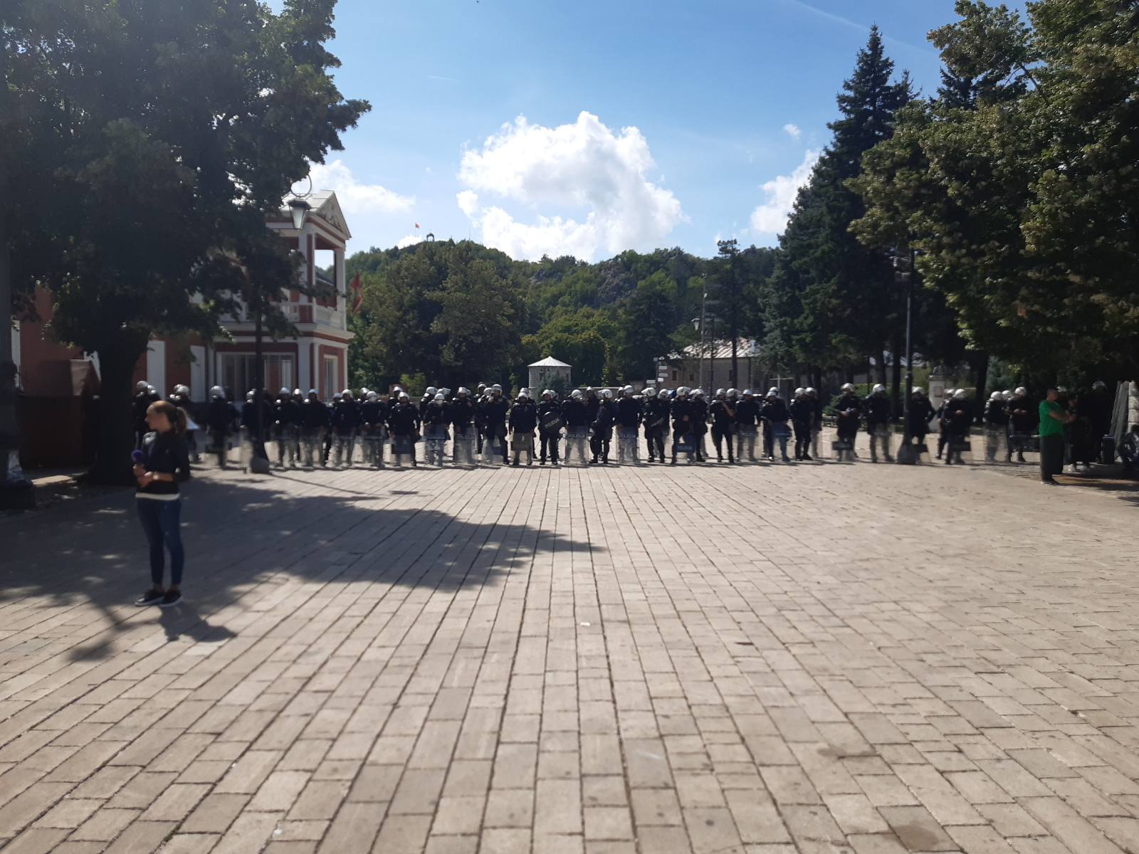 Cetinjski manastir je potpuno ograđen i obezbeđuju ga jake policijske snage. Mediji prenose da Komunalna policija nije izdala dozvolu za postavljenja ograda.