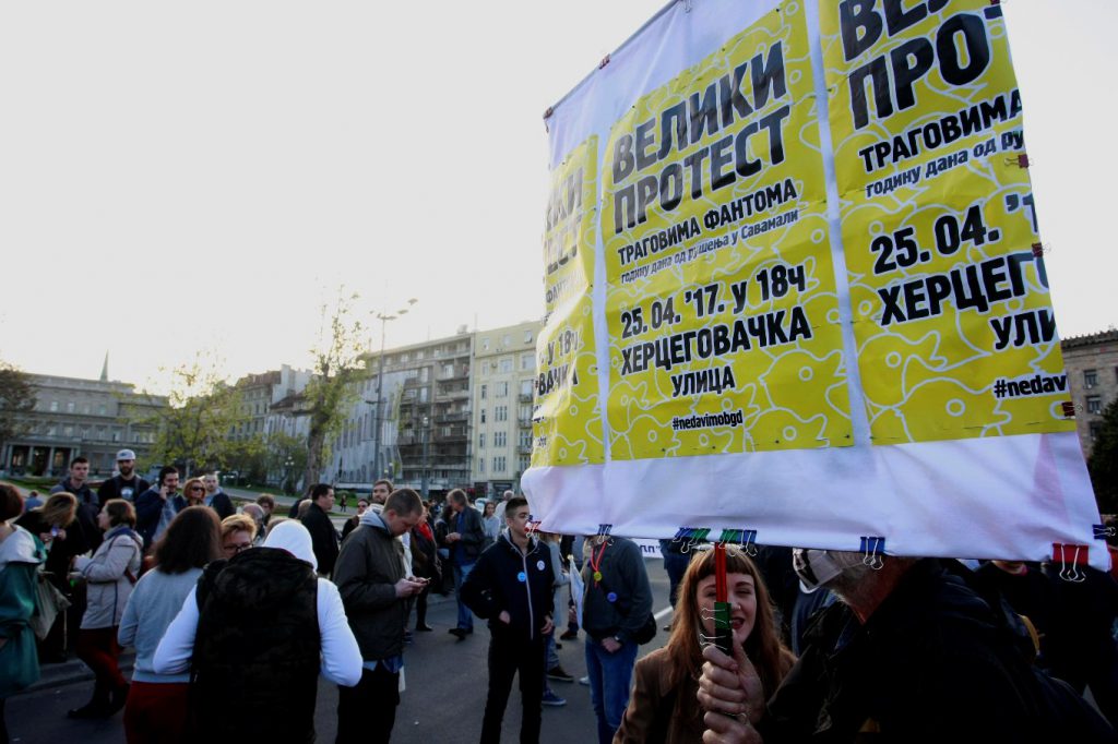 Zastali su, kratko ispred Terazijske česme da bi se, kako je rečeno preko megafona, podsetili demonstracija iz 1990-ih godina protiv režima Slobodana Miloševića, a zatim su protestovali ispred sedišta lista „Informer“.