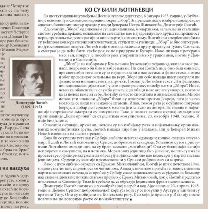 “Politikin zabavnik”, nedeljnik iz kojeg sam davnih sedamdesetih godina 20. veka učio čitati, objavio je u poslednjem broju, od petka, 18. januara 2019. godine, tekst pod naslovom “Ko su bili ljotićevci” u kojem je iznet niz čistih istorijskih falsifikata, valjda kako bi i najmlađi čitaoci poverovali da je biti nacista i fašista sasvim cool stvar.