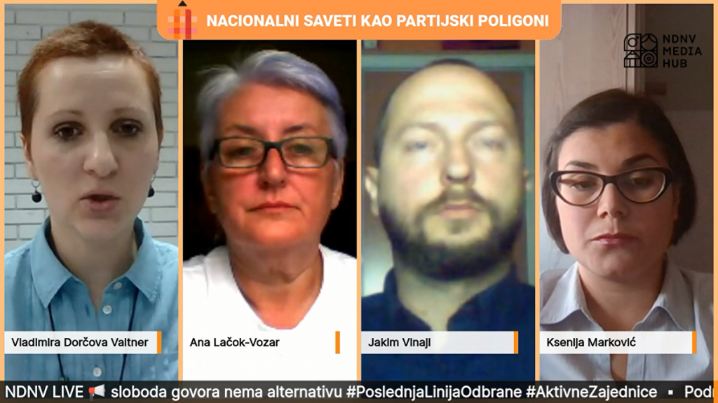 “U situaciji kad imamo urušene sve institucije, ovo nije izolovan slučaj. Ovde je reč o tome nacionalni saveti zapravo imaj isti problem kao i sve druge institucije u zemlji. A to su klasični poltički obračun i zloupotreba moći”, istakal je ona.