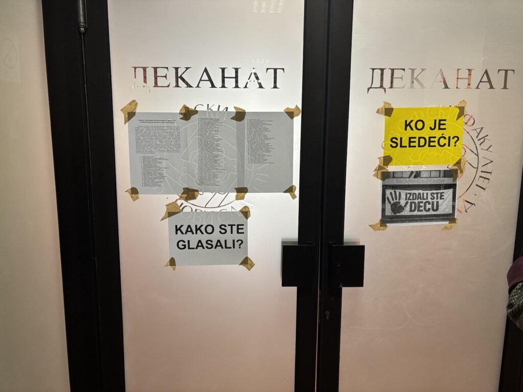 Oni su na vrata Dekanata zalepiti poruke „Ko je sledeći?“, „Kako ste glasali“, „Izdali ste decu“, „Kad je muka – Banjaluka“ sa otiskom krvave šake.
