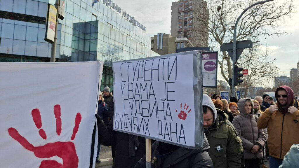 Dunja, studentkinja treće godine glume na Akademiji umetnosti u Novom Sadu, zahvalila je glumcima i čitavim ansamblima pozorišta u Srbiji što su od početka uz studente i što su stupili u štrajk i učinili korak koji nikada nije načinjen „u istoriji naše profesije“.