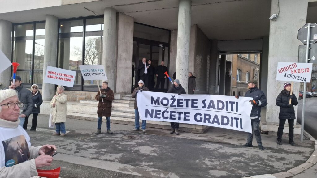 Ispred zgrade novosadske skupštine nema ograde, ni policije, što je u poslednjih godinu i po dana bila praksa, pogotovo kada su najavljena građanski i studentski protesti.