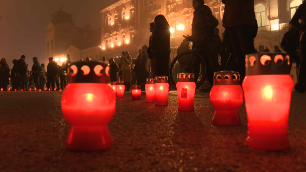 Studenti i građani Novog Sada okupili su se večeras, na poziv zborova građana, na Trgu slobode kako bi obeležili 13 meseci od pada nadstrešnce Železničke stanice i smrti 16 osoba. Potom su prošetali do Železničke stanice gde su zapalili sveće i odali poštu poginulima.