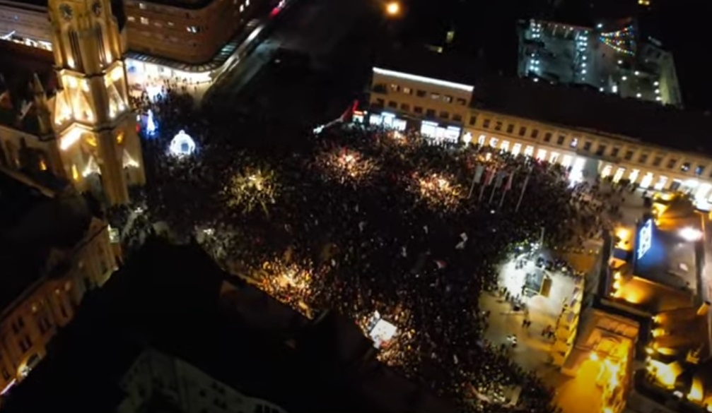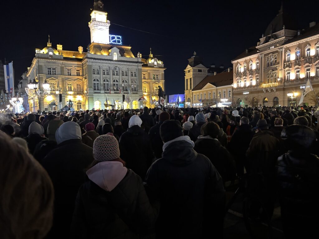 Trg slobode bio je pun, a jedini slobodan prostor bio je neposredno ispred bine koja je postavljena ispred Gradske kuće i sa koje su se obraćali govornici.