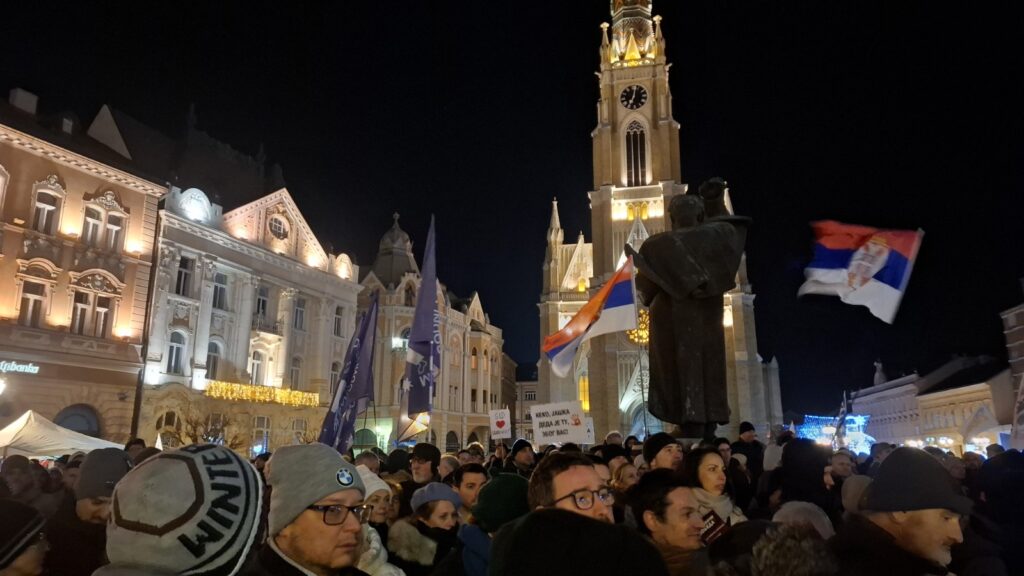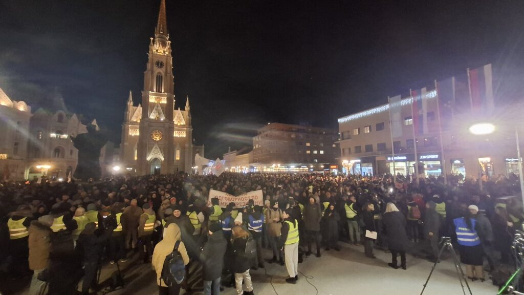 Unutar Gradske kuće bile su jake policijske snage u opremi za razbijanje demonstracija. Iza zgrade su bile policijeske „marice“, a ova vozila viđena su i kod Skupštine grada Novog Sada.