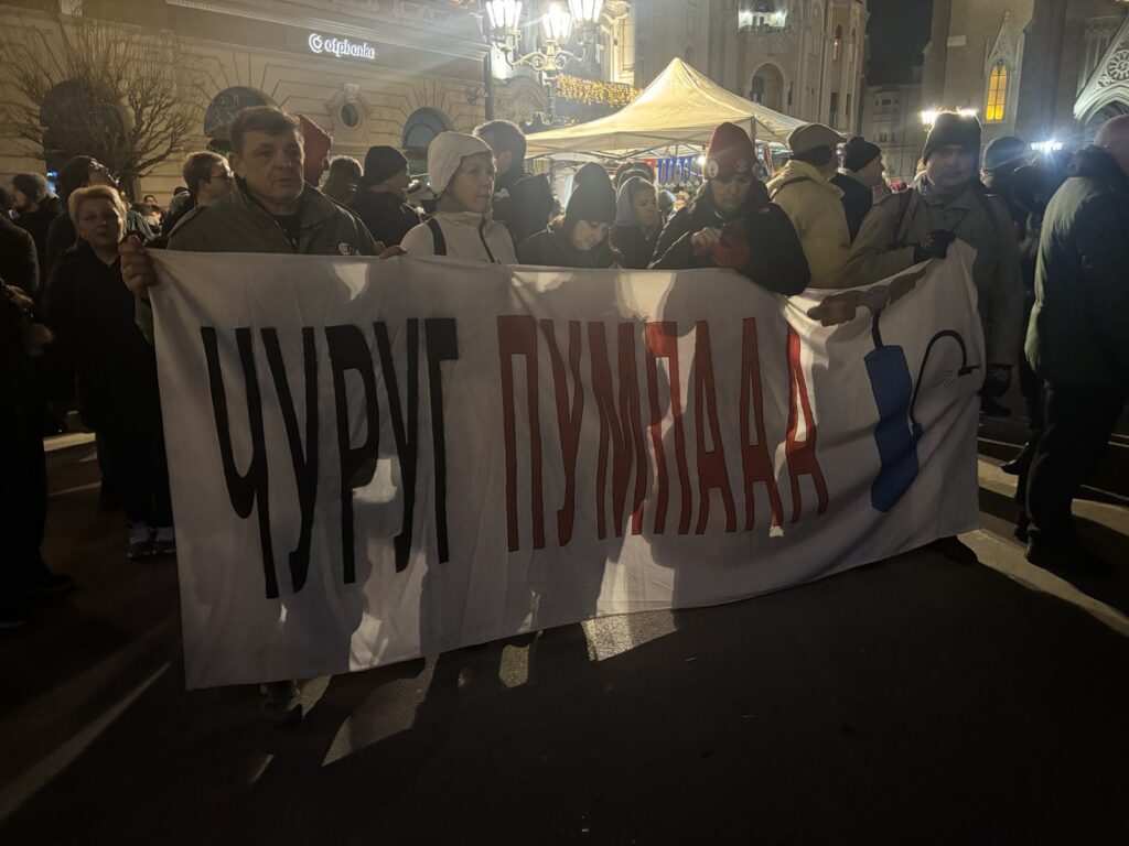 „Prvo mora doći odgovornost. Funkcioneri su besumučno krali, maltretirali običan narod, u svakom mestu imate lokalnog šerifa, uglavnom funkcionera lokalne vlasti, koji je zadužen za terorisanje građana. Srbija nema političku stranku na vlasti, nego organizovanu kriminalnu grupu, čiji članovi kradu, zastrašuju, otimaju, a zbog njihvog javašluka životom je platilo 16 ljudi“, naveo je student.