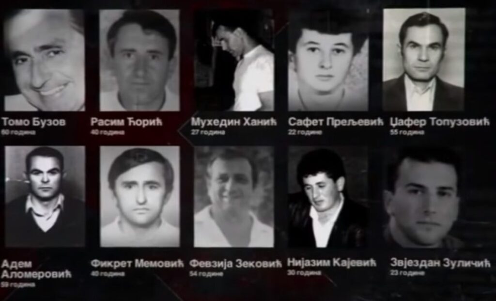 Na železničkoj stanici u Štrpcima su pripadnici VRS-a iz voza izveli 20 civila, većinom Bošnjaka.  Ubijeno je 19 državljana tadašnje Savezne Republike Jugoslavije, nesrba, i jedno nepoznato lice (putnik afričkog porekla, za čijim se identitetom nije mnogo tragalo). Na svoja odredišta nisu stigli građani, putnici voza 671 koji je saobraćao na relaciji Beograd-Bar: Esad Kapetanović, star 19 godina, zaposlen u preduzeću “Rad”, Beograd; Ilijaz Ličina (43), zaposlen u preduzeću “Ratko Mitrović”, Beograd; Fehim Bakija, (43), zaposlen u “Planumu”, Beograd; Šećo Softić (48) zaposlen u ŽTP, Beograd; Rifet Husović (26), zaposlen u Bijelom Polju; Ismet Babačić (30), zaposlen u preduzeću „Wall Street”, Podgorica; Hail Zupčević (49), izbeglica iz Trebinja; Adem Alomerović (59), zaposlen u „Raketi”, Prijepolje; Rasim Ćorić (40), zaposlen u „Limci”, Prijepolje; Fikret Memetović (40), zaposlen u ŽTP Beograd; Favzija Zeković (54), vlasnik radnje u Kraljevu; Nijazim Kajević (30), zaposlen u pribojskoj pošti; Muhedin Hanić (27), zaposlen u „Zmaju”, Beograd; Safet Preljević (22), zaposlen u privatnoj radnji u Beogradu; Džafer Topuzović (55), zaposlen u „Planumu”, Prijepolje; Jusuf Rastoder (45), zaposlen u Beogradu; Zvezdan Zuličić (23), student, izbeglica iz Sarajeva, Tomo Buzov, vojni penzioner iz Beograda; i najmlađi među njima, šesnaestogodišnji Sead Đečević, učenik iz Bara. Najmlađa žrtva imala je 16, a najstarija 59 godina.