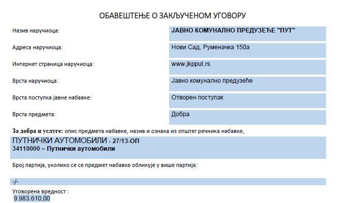 Pored ovog javnog preduzeća, u proteklih godinu dana ugovore za kupovinu putničkih automobila sklopili su i JGSP Novi Sad, gradska Tržnica i Zavod za zaštitu spomenika kulture.
