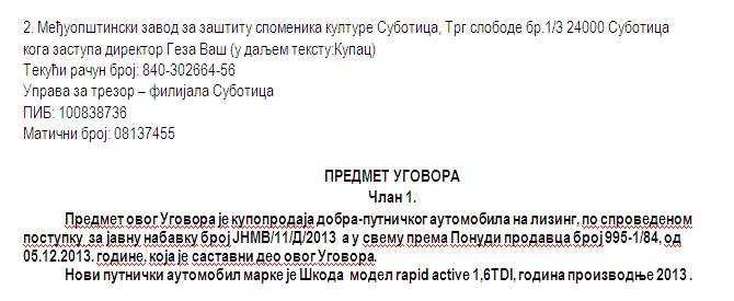 Škode preferiraju i u subotičkom međuopštinskom Zavodu za zaštitu spomenika kulture. U ovoj ustanovi su krajem prošle godine ugovorili kupovinu putničkog automobila na lizing u vrednosti od 10,5 hiljada evra.