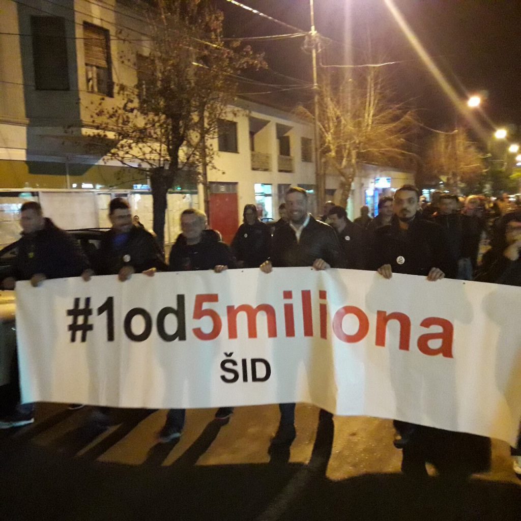 Oko 200 građana Šida okupilo se u petak uveče na platou ispred Vojvođanske banke u tom gradu, na protestu „Jedan od pet miliona“.