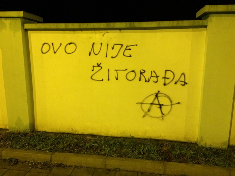Na više mesta u gradu, od Novog naselja do centra, piše: “Ovo nije Žitorađa” (rodno mesto Svetlane Ražnatović), “Novi Sad nije Žitorađa”, “Nije ovo Žitorađa”.