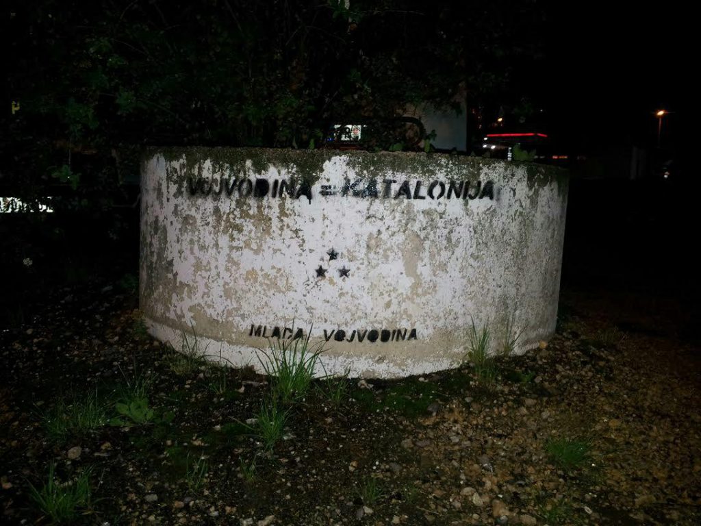 Te grafite je potpisala “Mlada Vojvodina” a na njima se, pored “Vojvodina = Katalonija”, nalaze i tri zvezdice sa vojvođanske zastave.