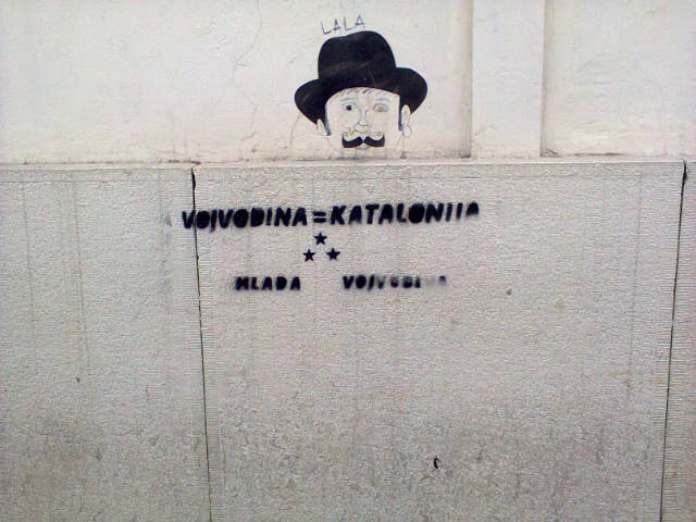 Na nekoliko lokacija u Novom Sadu danas su osvanuli grafiti na kojima je ispisano „Vojvodina = Katalonija“.