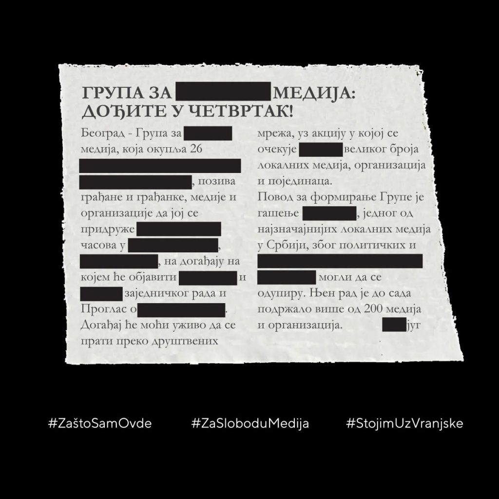 Direktan povod za formiranje Grupe za slobodu medija je gašenje Vranjskih, jednog od najzna?ajnijih lokalnih medija u Srbiji, zbog stalnih politi?kih pritisaka kojima više nisu mogli da se odupiru.