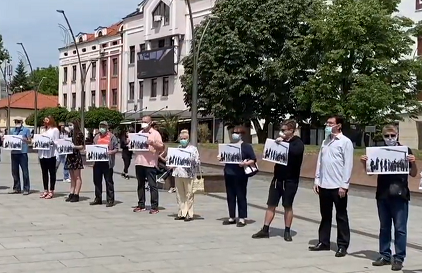 Tuzlaci su u razmaku od jednog metra, zbog pandemije kovida-19, u rukama držali istorijsku fotografiju koja svedoči o stradanju građana Sarajeva za vreme vladavine ustaškog režima NDH tokom Drugogh svetskog rata.
