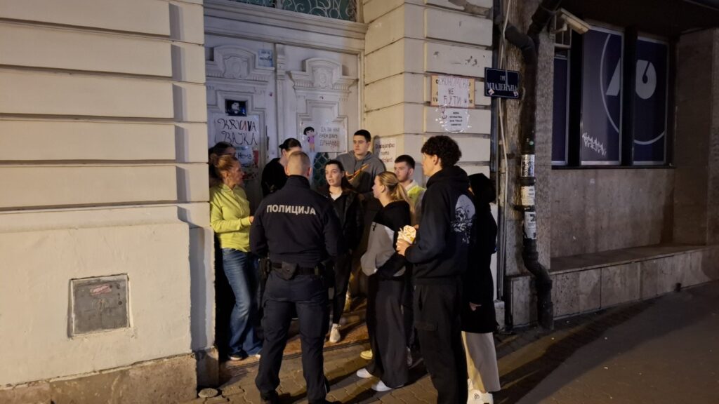 Prema izjavama prisutnih, učenica je pokušala da uzme ključ od vrata, pri čemu je došlo do svađe između nje i učenika koji učestvuju u blokadi.