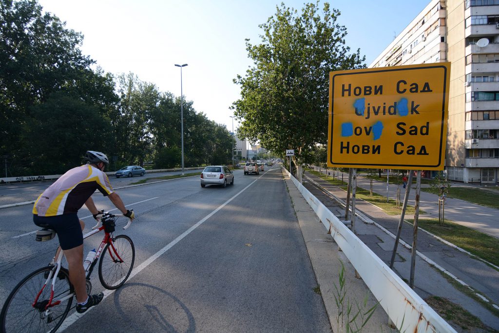 Nepoznati počinioci išarali su tablu sa nazivom Novog Sada na latiničnom pismu, kao i naziv glavnog grada Vojvodine na mađarskom jeziku.
