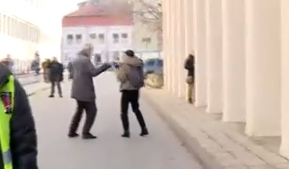 "Stariji muškarac bio je ljut što ne može da prođe od studenata i udario je mikrofon novinarke dva puta. Pitala ga je zašto je prethodno odgurnuo ženu koja je potom pala"