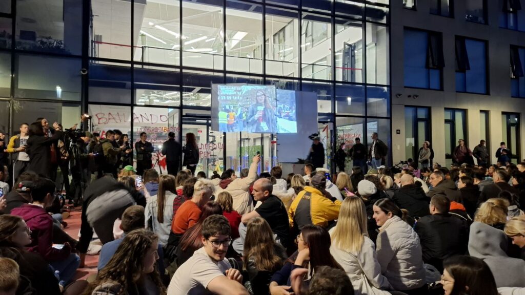 Nekoliko desetina građana i dalje se nalazi ispred zgrade RTV na Mišeluku, gde su došli juče oko 16:30, i trebalo bi da ostanu tu do danas u 16:30, odnosno da protest traje puna dvadeset i četiri časa.