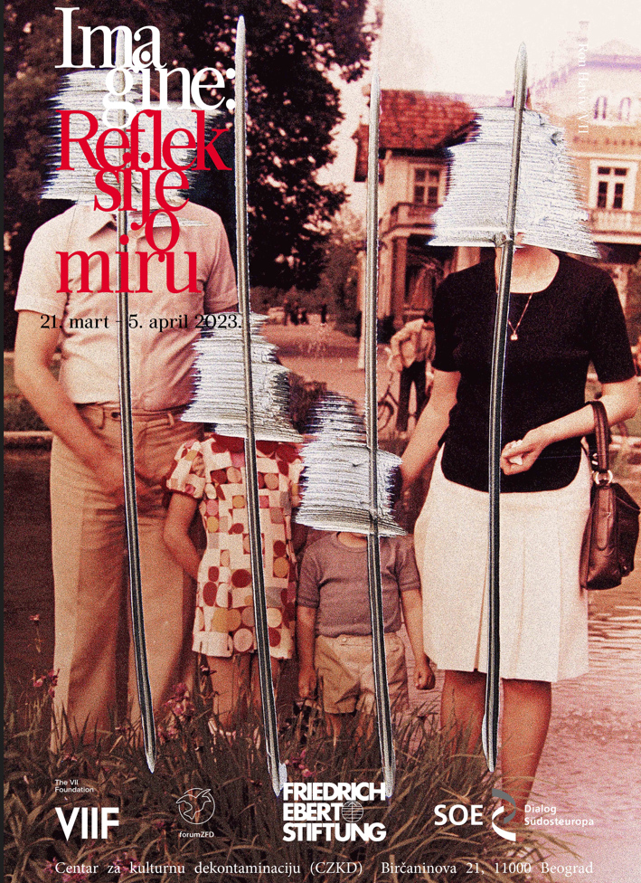 Izložba pod nazivom „IMAGINE – refleksije o miru“ biće otvorena sutra, 21. marta 2023. godine, s početkom u 18.30 časova u Centru za kulturnu dekontaminaciju (CZKD), Birčaninova 21, u Beogradu.