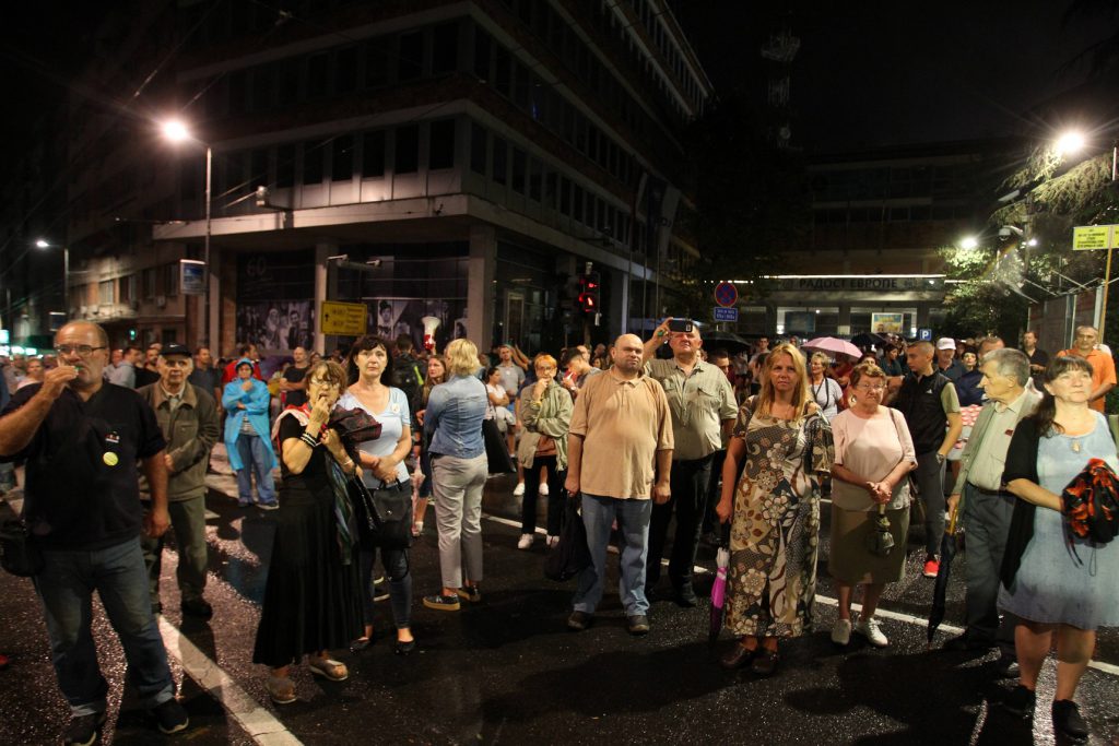 Valentina Reković, iz Jedan od pet miliona pozvala je na „minut ćutanja umrloj istini“, pokazujući na zgradu Rektorata, koja je kod mesta gde se održava protest.