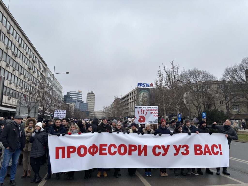 Zbog neustavne uredbe tehničke vlade, profesori i saradnici fakulteta i visokih škola već dva i po meseca primaju mizerne plate (na primer – 20,000 dinara, neko manje, neko više), jer režim želi da slomi studentski protest tako što će nas iscrpeti i okrenuti protiv studenata.