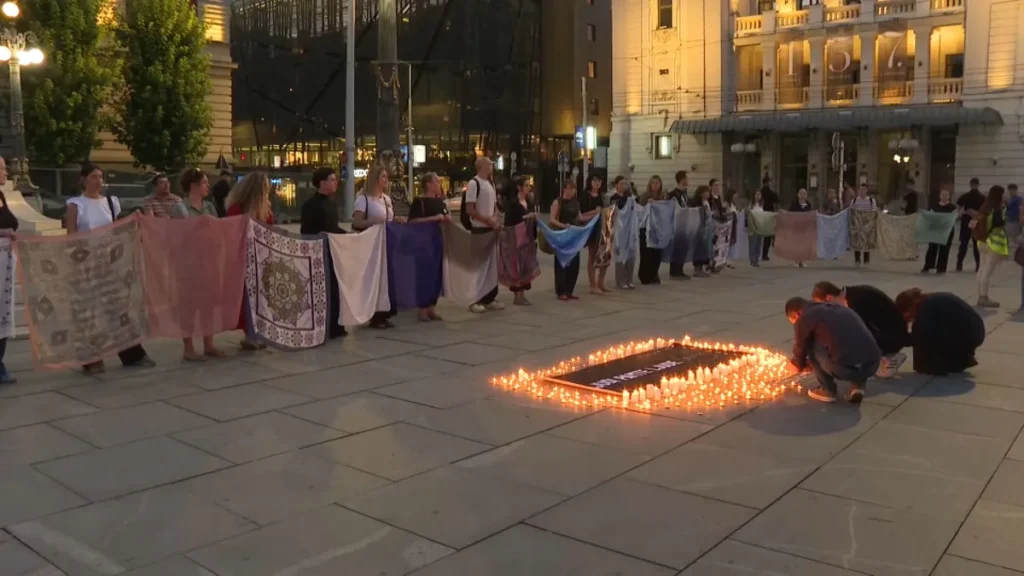 Na skupu na Trgu republike predstavnici nevladinih organizacija, novinari i građani zapalili su sveće i izveli akciju „Majčina marama“, u kojoj su, dok su stajali u polukrugu, razvili veliki broj marama.