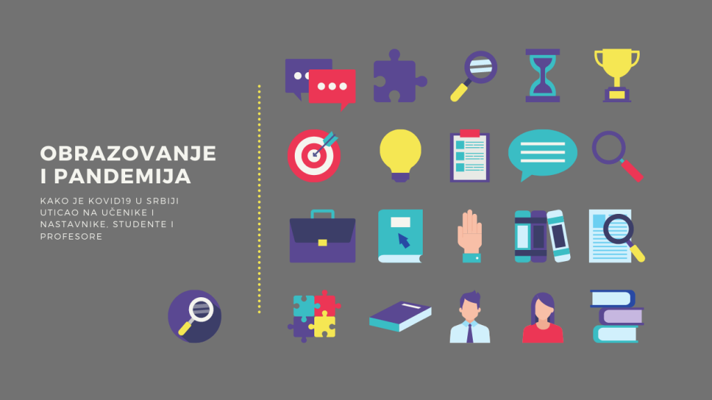 Na samom početku pandemije KOVID19 virusa u Srbiji sektor obrazovanja je odmah pretrpeo neke od najznačajnijih promena. Nemogućnost održavanja nastave na tradicionalan način zbog mera socijalne distance, potpuno je poremetilo nastavnike i učenike, profesore i studente.