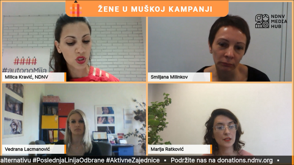„Jedna voditeljka i četiri političara u studiju najčešća su slika tokom ove izborne kampanje. Imamo priliku da vidimo i čujemo nešto što je kontra onog što bi trebalo da imamo u debati o ženi koja se predstavlja na pravi način. One se uglavnom predstavljaju kroz spoljne karakteristike“, rekla je Milinkov.