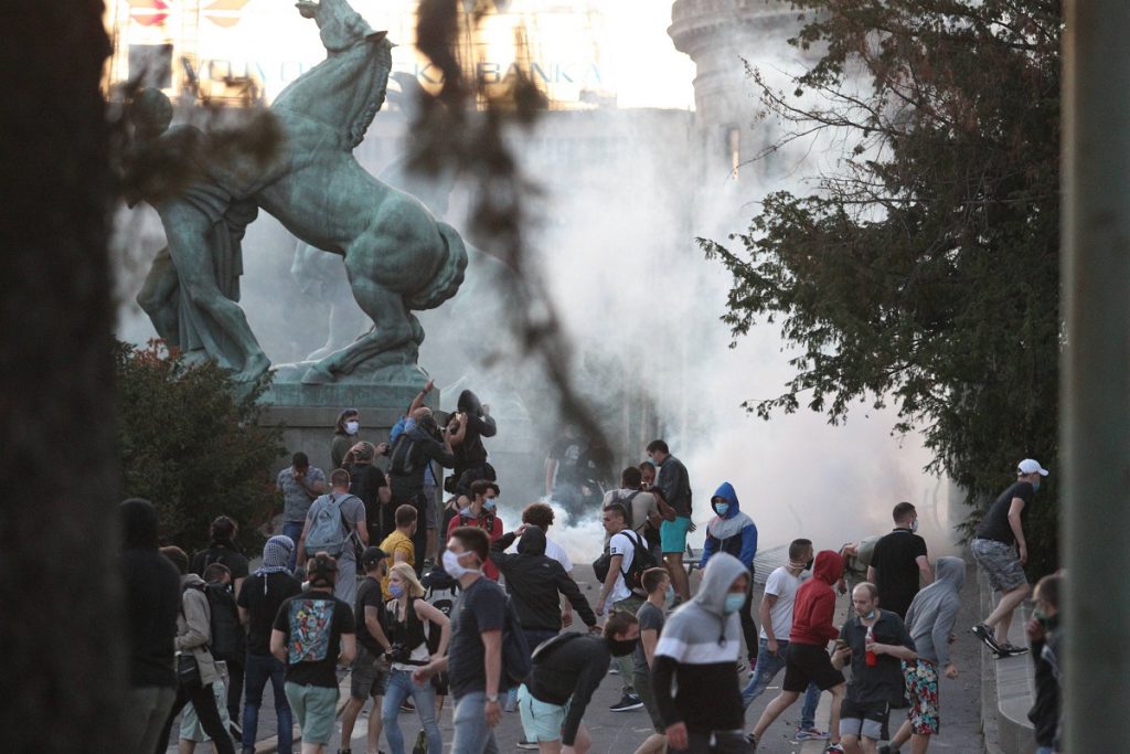 Drugog dana protesta zbog načina na koji predsednik Srbije Aleksandar Vučić upravlja zdravstvenom krizom, navodi AP, policija je na konjima i u oklopnim vozilima intervenisala u centru grada da bi potisnula demonstrante, postavila kordone i sprečila masu da se vrati na plato ispred parlamenta.