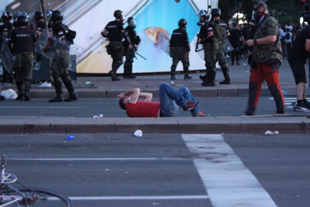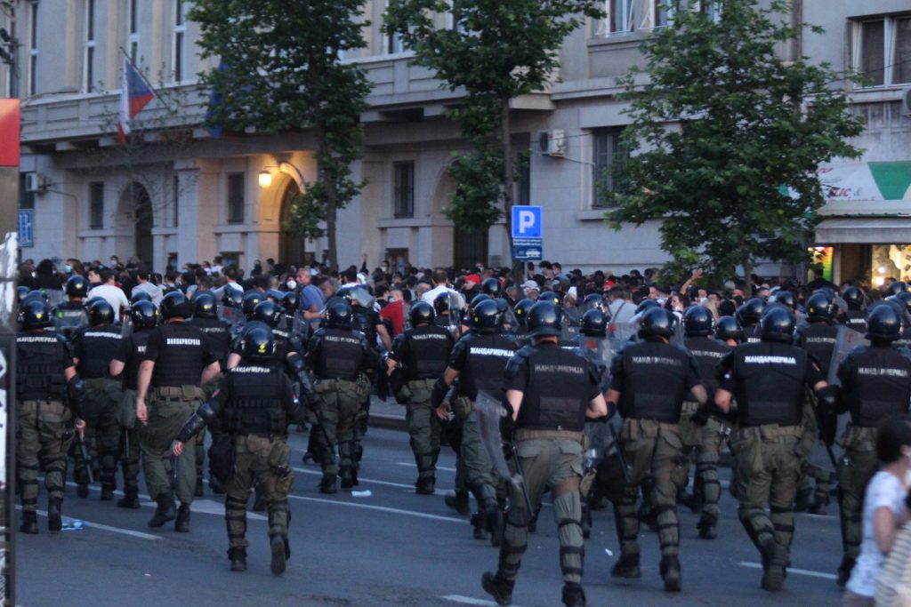Pripadnici MUP-a Srbije oko 23.30 potisnuli su demonstrante u Bulevaru kralja Aleksandra prema okolnim ulicama a u intervenciji su povredili izveštača agencije Beta, uprkos tome što im je pokazao novinarsku legitimaciju.