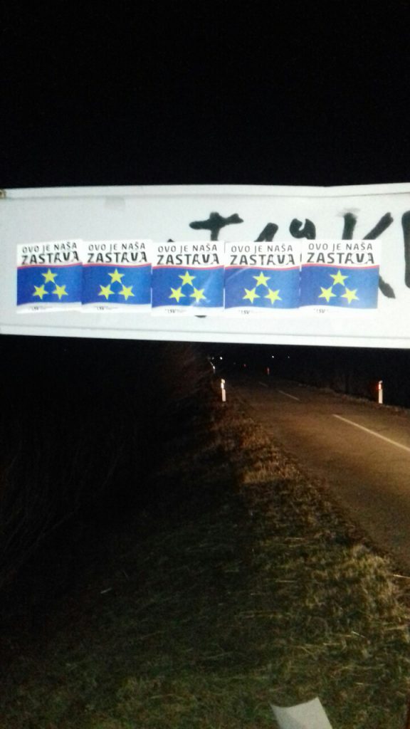 Nalepnice sa motivom zastave Vojvodine i natpisom “Ovo je naša zastava” osvanule su jutros na nekoliko mesta u Novom Sadu.