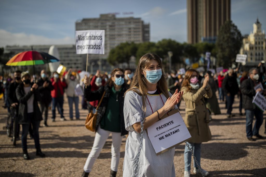 Ljekari i medicinske sestre su danas uz zvuk bubnjeva protestovali u Madridu zbog, kako kažu, smanjenja medicinskih usluga i zato što su ih vlasti ostavile da se sami bore protiv koronavirusa.