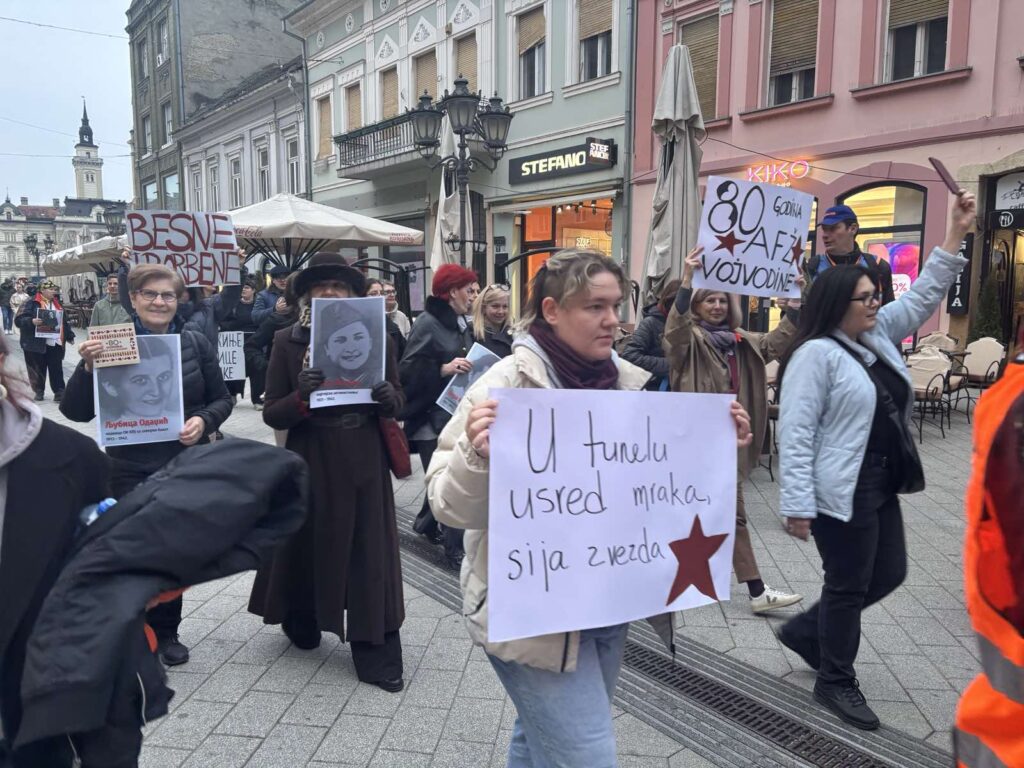 Antifašistkinje su danas organizovale marš kroz centar Novog Sada kako bi obeležile 80. godišnjicu od osnivanja Anfifašističkog fronta žena (AFŽ) Vojvodine.