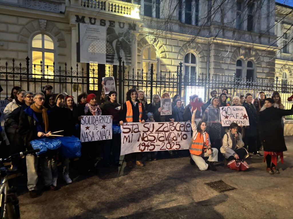 “Osam decenija kasnije, mi se i dalje odlučno suprotstavljamo militarizmu, imperijalizmu, mizoginiji, ksenofobiji i rasizmu. U danima kada se u mnogim našim gradovima vodi borba za pravdu i slobodu, a protiv korupcije i totalitarizma FAMa obeležavanjem ovog značajnog događaja ukazuje na korene herojskog antifašizma u Srbiji i Vojvodini”, poručile su aktivistkinje FAMe.