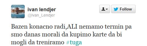 U međuvremenu, Ivan Lenđer je promenio svoju profilnu sliku na Tviteru. Umesto dosadašnje, na kojoj pliva, njegov nalog sada ‘krasi’ slika magarca. On je postavio i pesmu, citirajući reči: “Primoran da igraš kako muzika svira, ni u četiri zida ne daju ti mira…”, a potom je okačio i sliku sa zrenjaninskog bazena na kojoj , pored imena njegovog kluba, piše: “This is our house”.