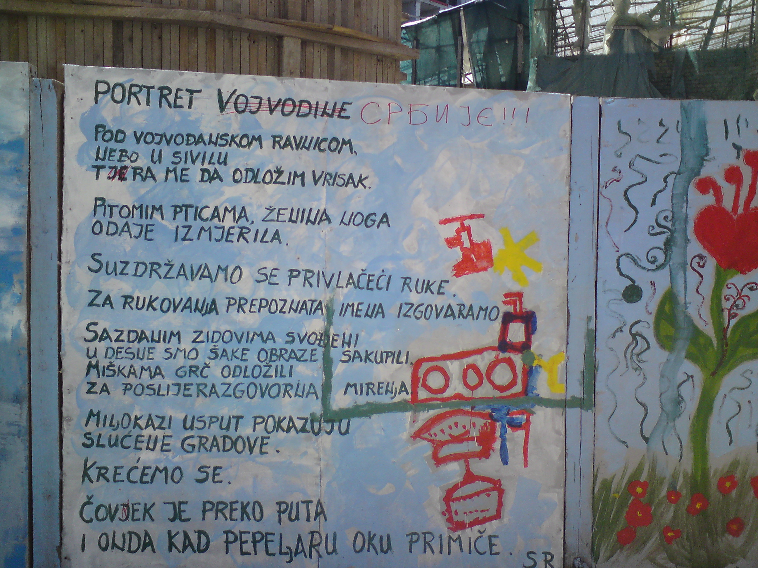 Jakovljevićeva je novinarima ispričala da je videla nepoznatog muškarca kako škraba po platnu na kojem su lokalni umetnici tokom vikenda slikali, u akciji koju je organizovao Kabinet gradonačelnika, s ciljem da se skrene pažnja na to da se ograda oko pozorišta koristi za isticanje neprikladnih poruka, čime se od te ograde pravi ruglo u centru grada.