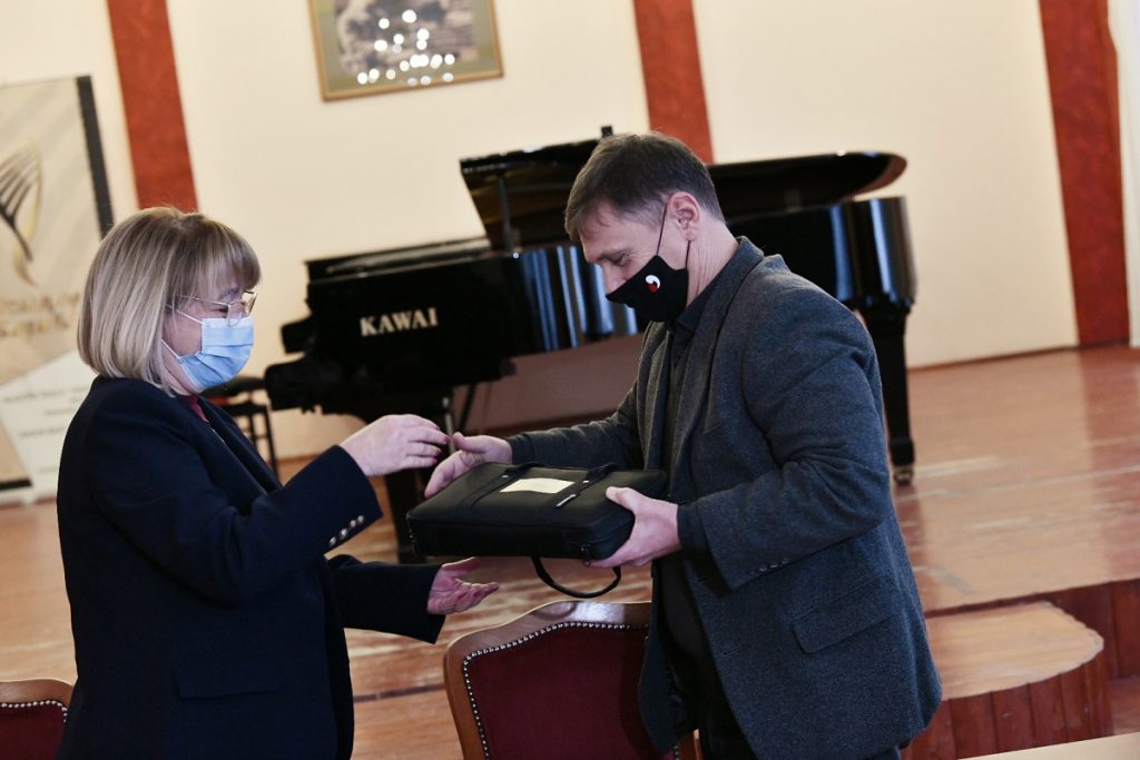 Ugovor o poklonu potpisali su direktorica Muzičke škole Isidor Bajić, gospođa Radmila Rakin-Martinović, koja je zvanično u ime škole i primila instrument i sekretar Muzičke omladine Novog Sada gospodin Milan Radulović.